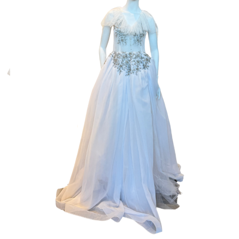 White Tulle Ruffle Ballgown w/Rhinestone Appliqués
